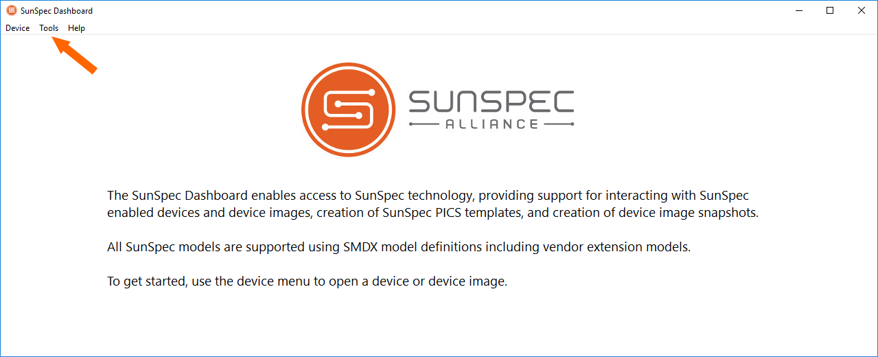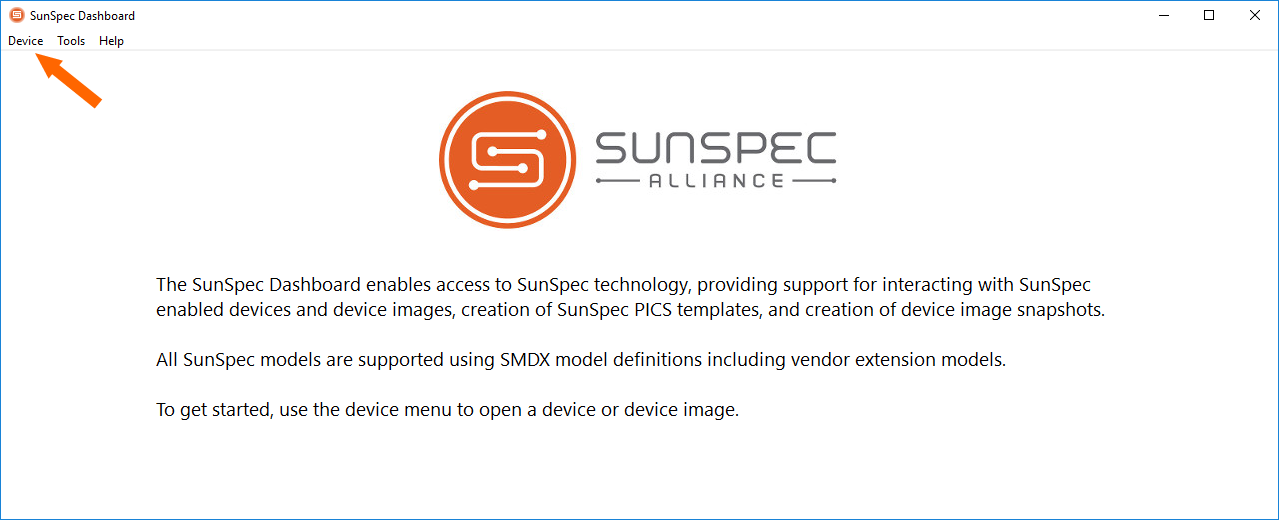 In SunSpec Dashboard app click on bookmark Device and then Open.