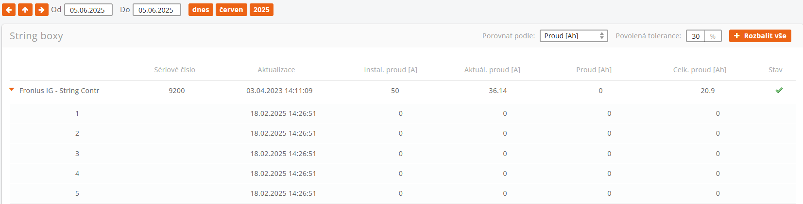 Údaj je vyčtený ze stringů jednotkou Solar Monitor.