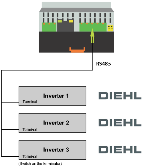 In case of the involvement of multiple inverters, connect the inverters each other this way: