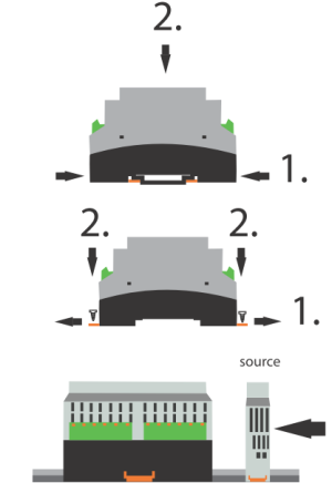 Solar Monitor unit plus expansion modules can be fastened on the wall or DIN rail as shown in the pictures bellow.