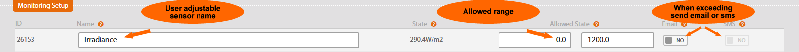 You set up the delay between the time when alarm appeared and the time when it is reported. This delay prevents sending many alarm reports with irradiation values just about the values preset in monitoring. (earlier on this page).