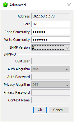 <font 14px/Arial, sans-serif;;rgb(51, 51, 51) font-family: Arial, sans-serif; font-size: 14px;;;#ffffff>Fill in</font> Read Community <font 14px/Arial, sans-serif;;rgb(51, 51, 51) font-family: Arial, sans-serif; font-size: 14px;;;#ffffff>and</font> Write Community <font 14px/Arial, sans-serif;;rgb(51, 51, 51) font-family: Arial, sans-serif; font-size: 14px;;;#ffffff>as specified in Solar Monitor settings (</font> public <font 14px/Arial, sans-serif;;rgb(51, 51, 51) font-family: Arial, sans-serif; font-size: 14px;;;#ffffff>,</font> private <font 12.8px color: rgb(0, 0, 0);/arial;;rgb(0, 0, 0);;#ffffff>in default setting</font> <font 14px/Arial, sans-serif;;rgb(51, 51, 51) font-family: Arial, sans-serif; font-size: 14px;;;#ffffff>). Click on OK.</font>