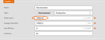 Enter the correct number of pulses per 1 kWh (as specified in SO output at the counter).