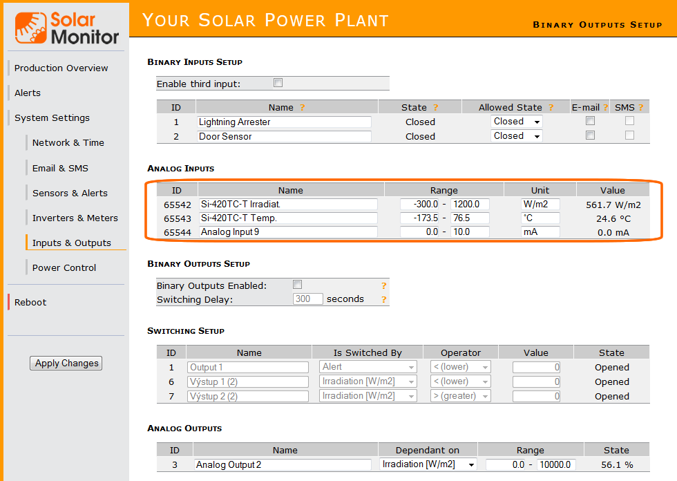 Example of setting with connected Ingenieurbüro Mencke Si-420TC-T sensor.