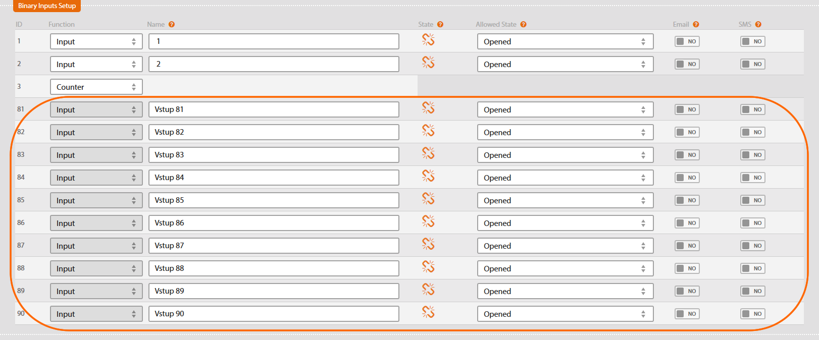 It is possible to choose the type of message (e-mail, SMS) that informs the user of changes in input values.
