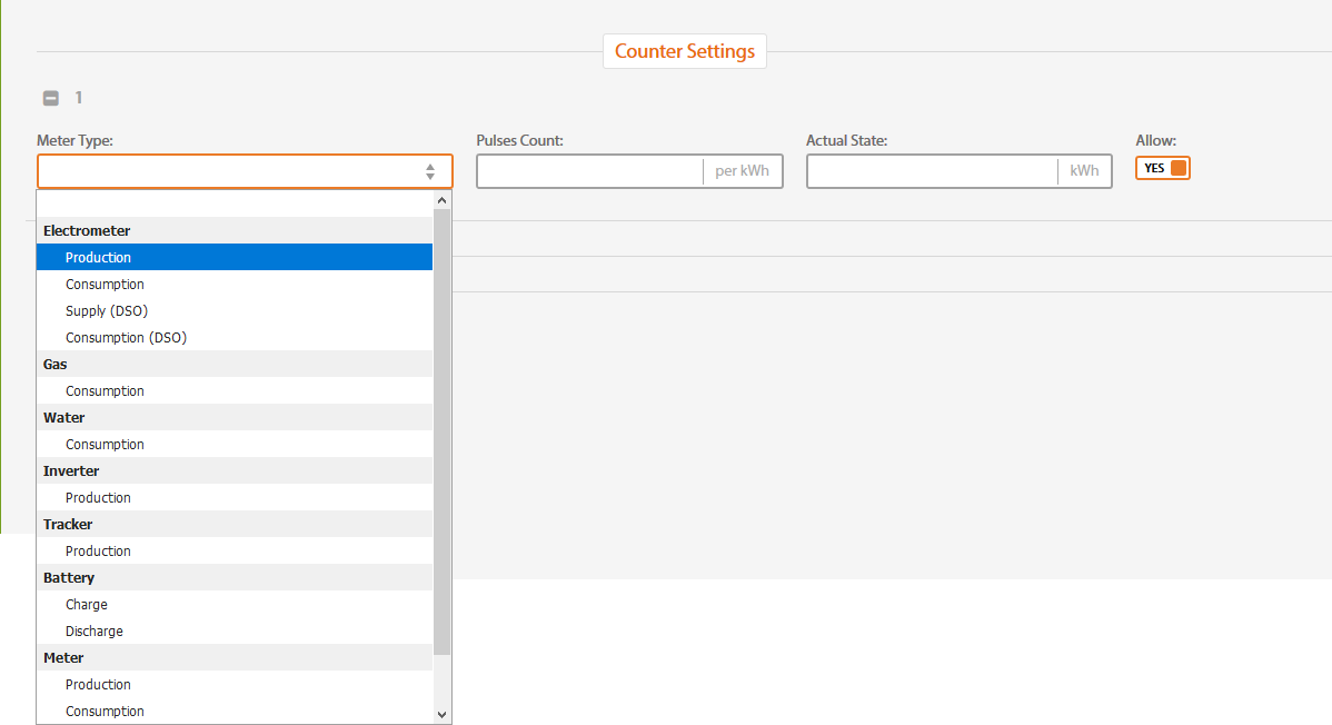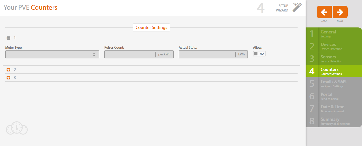 If there is no counter connected to your Solar Monitor (electrometer, gas meter, inverter, tracker, batery or another meter), go to Next >>