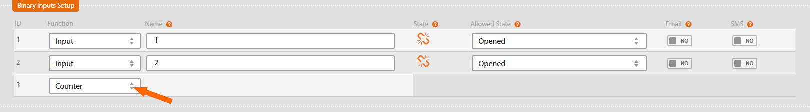 In SM2-MU web interface go to menu Settings/Inputs & Counters