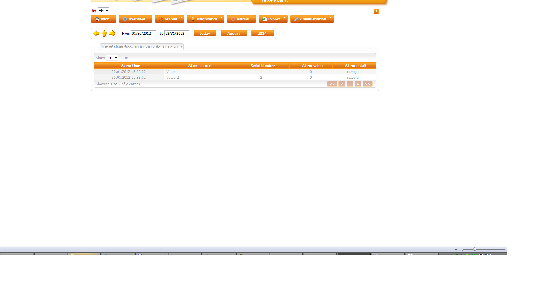 Recorded alarms can be presented for daily, monthly or annual period. Time period stipulates the day (days) of presented alarms.