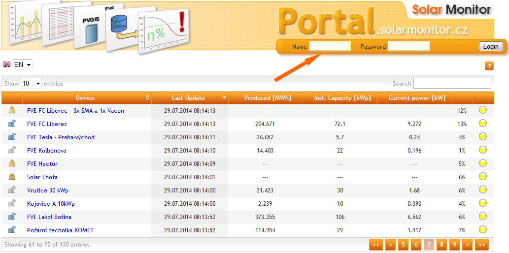 Name and password is required. You enter the name and the password at the front page of the Solar Monitor Portal in the right upper corner.