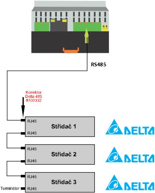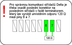 Na posledním výstupu ze střídače (slepém) se zapojí terminátor.