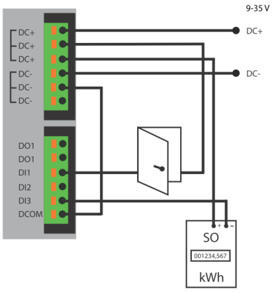 Solar monitor disponuje 3 digitálními vstupy DI. Lze tak snadno připojit čidlo pohybu, bleskojistku, optickou závoru, dveřní senzor a libovolné další typy zařízení, která svůj stav signalizují kontaktním výstupem. Kterýkoliv ze vstupů DI1, DI2, DI3 pak může být použit pro čítání energie z elektroměru. Podmínkou je, aby byl tento elektroměr vybaven pulsním výstupem S0.