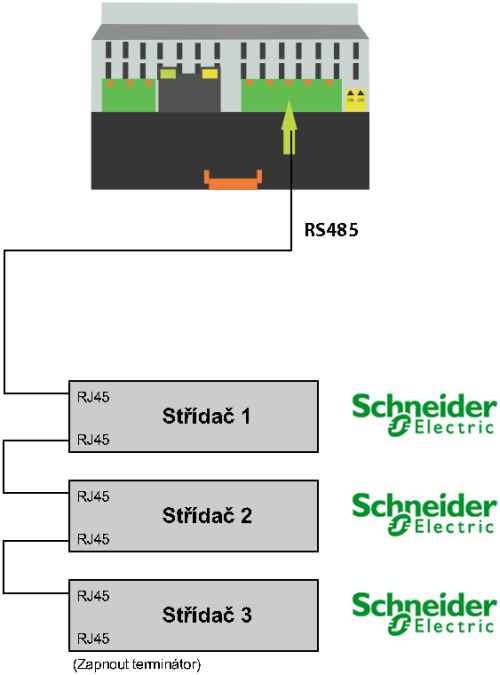 V případě zapojení více střídačů, propojte mezi sebou jednotlivé střídače rovným kabelem.