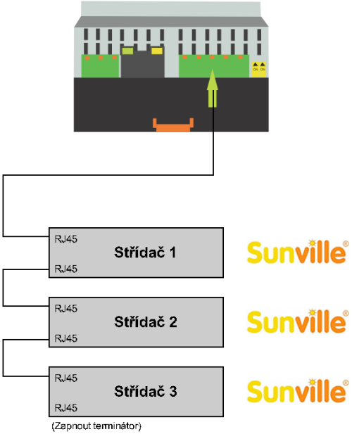 Pro vzájemné propojení více střídačů použijte rovný kabel.