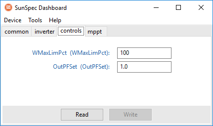 V aplikaci SunSpec Dashboard klikněte na záložku Device a poté na Open.