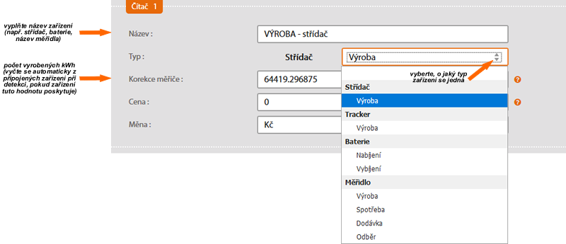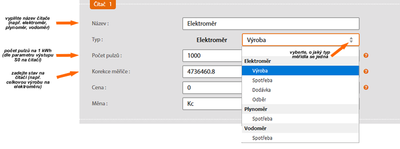 Zadejte jeho název (např. elektroměr) a vyberte typ čítače.