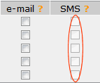 Zaškrtávací políčko slouží pro vybrání typu zprávy (E-mail, SMS), která informuje uživatele o změně povolené hodnoty vstupu.