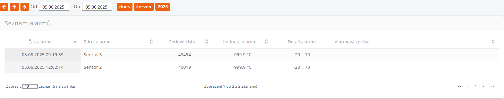 Název senzoru, kde došlo k alarmu (nastavuje se v jednotce Solar Monitor).