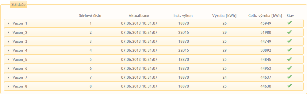 Střídače Rozkliknutím střídače zobrazíte detailní přehled o jeho výrobě.