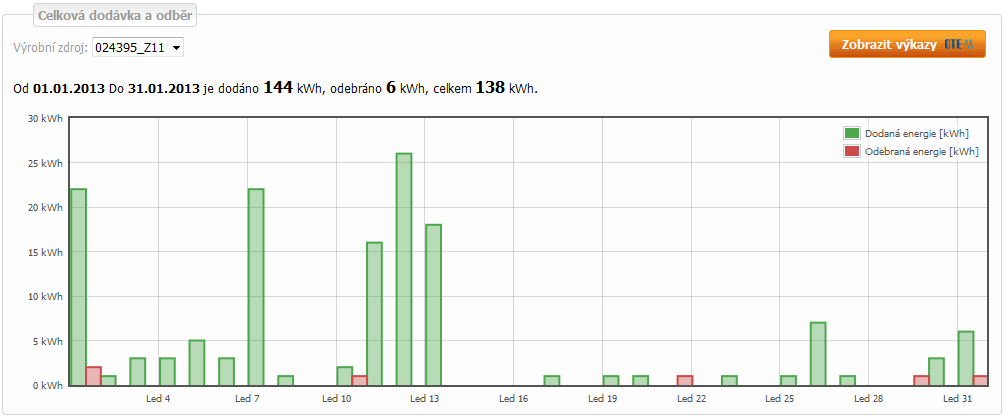 Pokud máte více výrobních zdrojů, nejdříve zvolte, pro jaký výrobní zdroj chcete zobrazit graf.