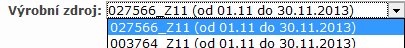 V následující roletce vyberte výrobní zdroj a období, pro které chcete zadávat výkaz. Pokud máte k vystavení výkazy za více období, vykazujte od nejstaršího.