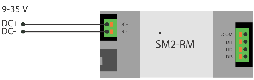 Připojte k jednotce SM2-RM napájení (9-35V) dle následujícího obrázku.