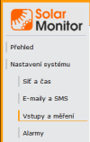 Konfigurace vstupů se provádí v menu Nastavení systému/Vstupy a měření (ve stejném menu jako Nastavení pulzů).