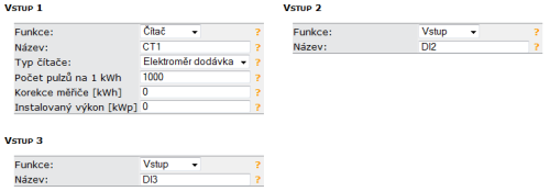 V případě, že máte do vstupů kromě elektroměru připojená další zařízení, informace o jejich konfiguraci se dozvíte v této části návodu.