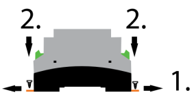 Nacvakněte modul na DIN lištu pomocí oranžových úchytek.